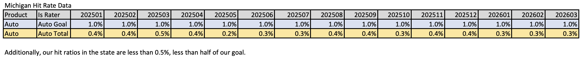 The core issue is competitiveness. Internal data shows Donegal’s rates sitting well above peers—about 13% higher than average and as much as 59% higher than the lowest competitor—which has translated into hit ratios consistently below 0.5%, far short of the company’s 1% target.